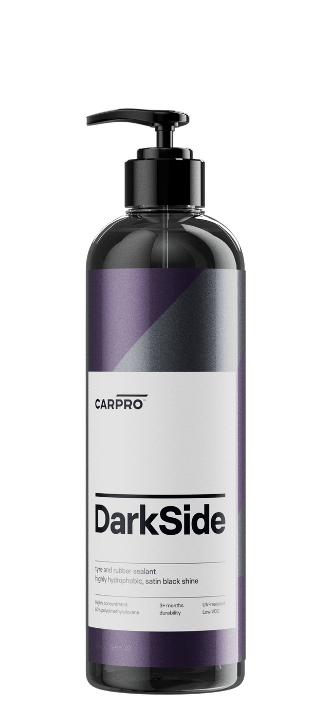 Step into the DarkSide and transform your tires and rubber trim with one of CARPRO’s most durable and easy-to-use sealants. CARPRO DarkSide delivers a bold, rich finish while packing in the same self-cleaning, water-beading technology that detailers trust from CARPRO coatings.